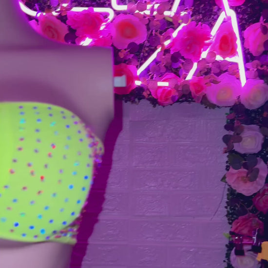 AMIRA- Neon Yellow Two Piece & Fishnets